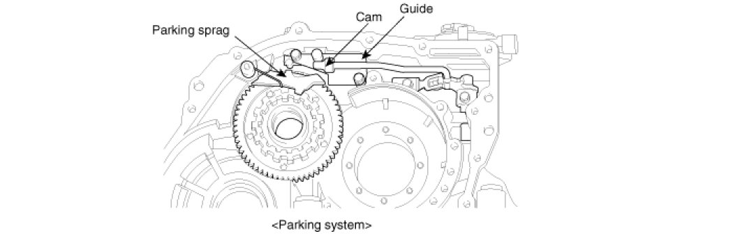 The roller type installed to the existing new generation AT needs the support to move the roller when operating the parking system and is so complicated. But the cam type for A4CF2 model doesn't need the support and the structure is simply. It only needs the guide to prevent from moving the cam idly.