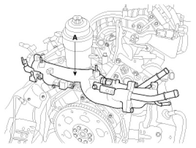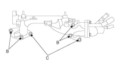 22. Remove the mounting bolts (B,C) and then remove the water temperature control assembly (A).