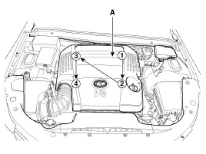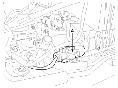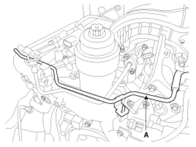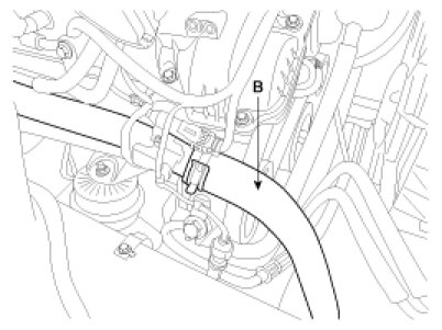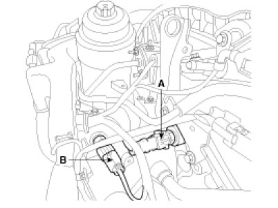 (1) Disconnect the power steering oil pressure switch connector(A) and RH knock sensor connector(B).