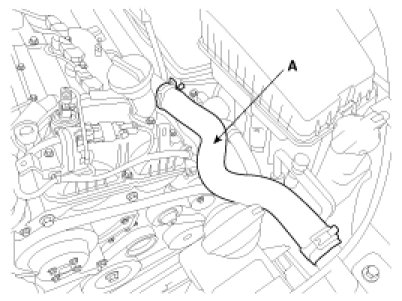 (1) Install the intake air hose (D) and air cleaner assembly (E).