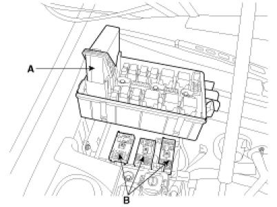 13. Remove the fuse & relay box (A) after disconnect from the connector (B).