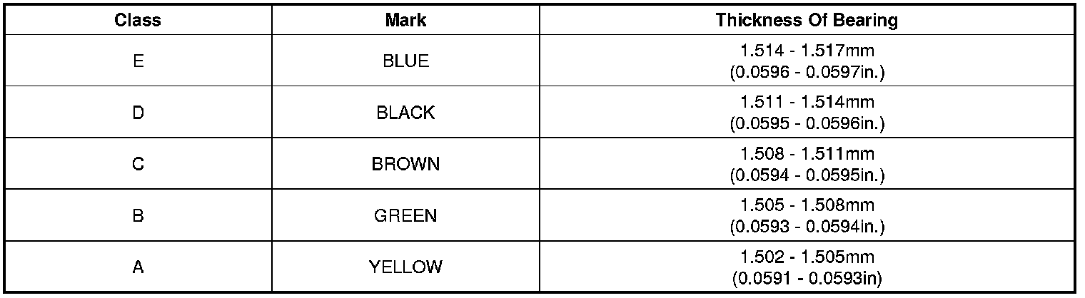 (10) If the plastigage shows the clearance is still incorrect, try the next larger or smaller bearing (the color listed above or below that one), and check clearance again.