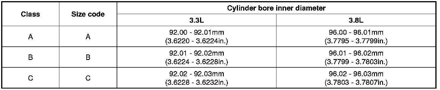 [3.8L] 96.00 - 96.03mm (3.7795 - 3.7807in.)
