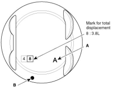 7. Check the piston size code(A) and the front mark(B) on the piston top face.