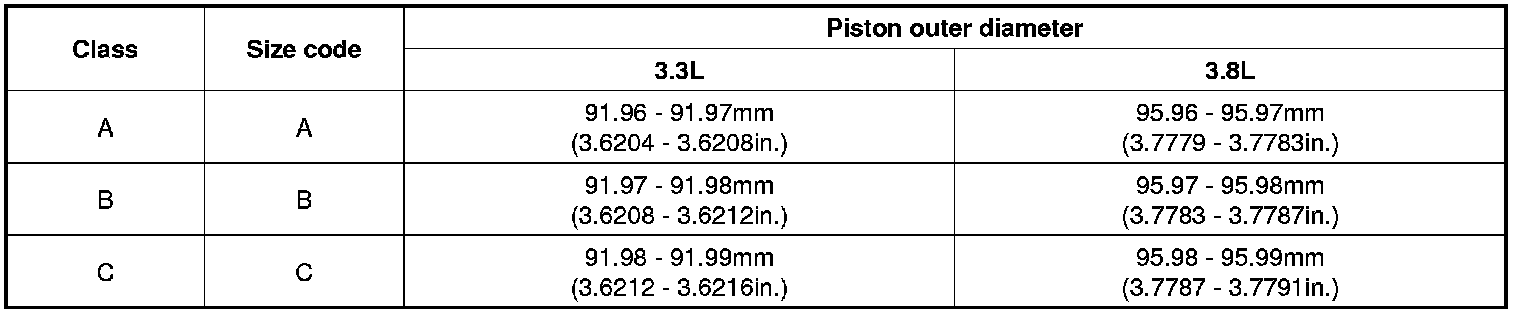 [3.8L] 95.96 - 95.99mm (3.7779 - 3.7791in.)