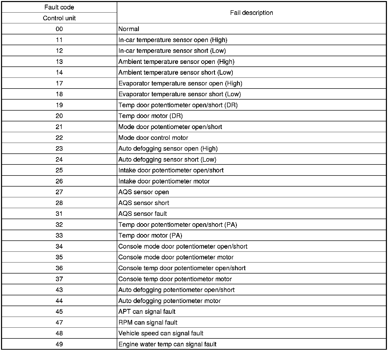 (13) Auto defog sensor : Control with the value of 0%.