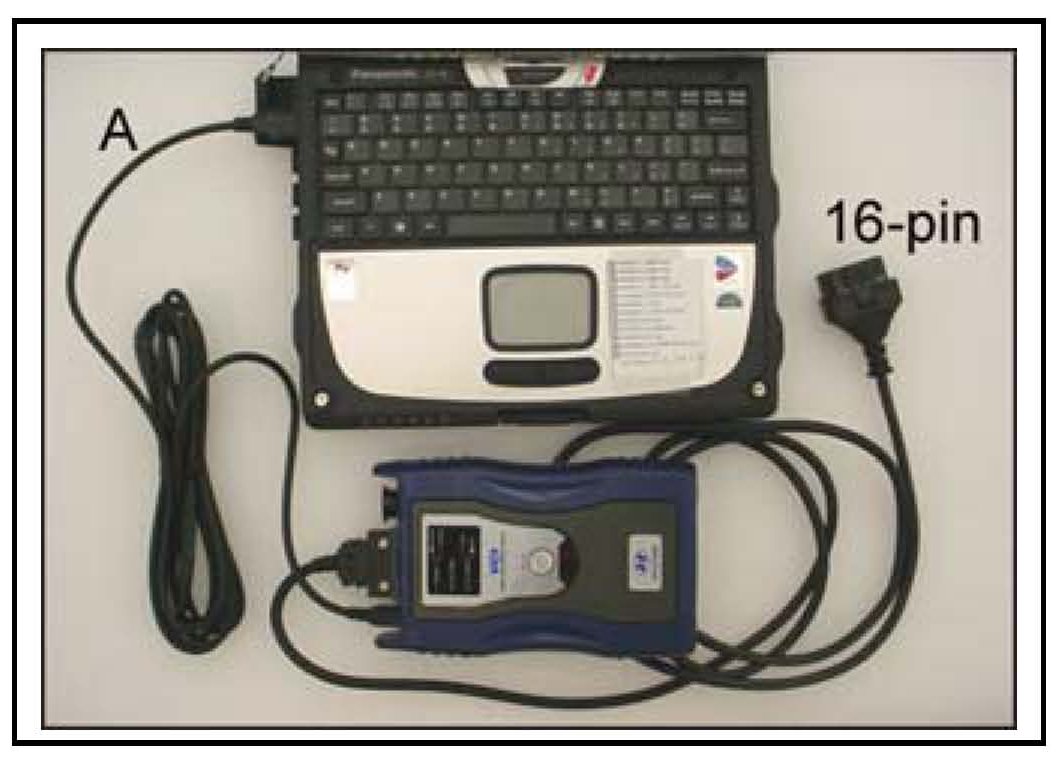 1. Connect the USB cable (A) between the GDS and the VCI.
