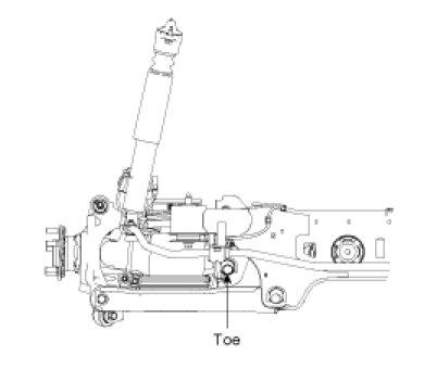 When the wheels are turned in toward the front of the vehicle, toe is positive (+) (toe in). When the wheels are turned out toward the front of the vehicle, toe is negative(-) (toe out). Toe is measured in degrees, from side to side, and totaled.