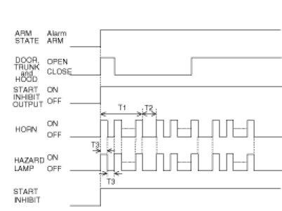 (4) START INHIBIT ON is held and the alarm is output for the remaining time even when DOOR, HOOD or TRUNK is closed during alarm.