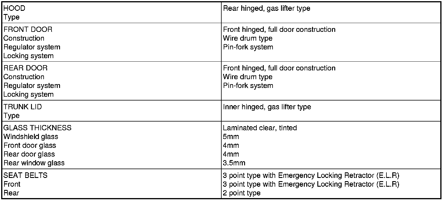 Body and Frame: Specifications