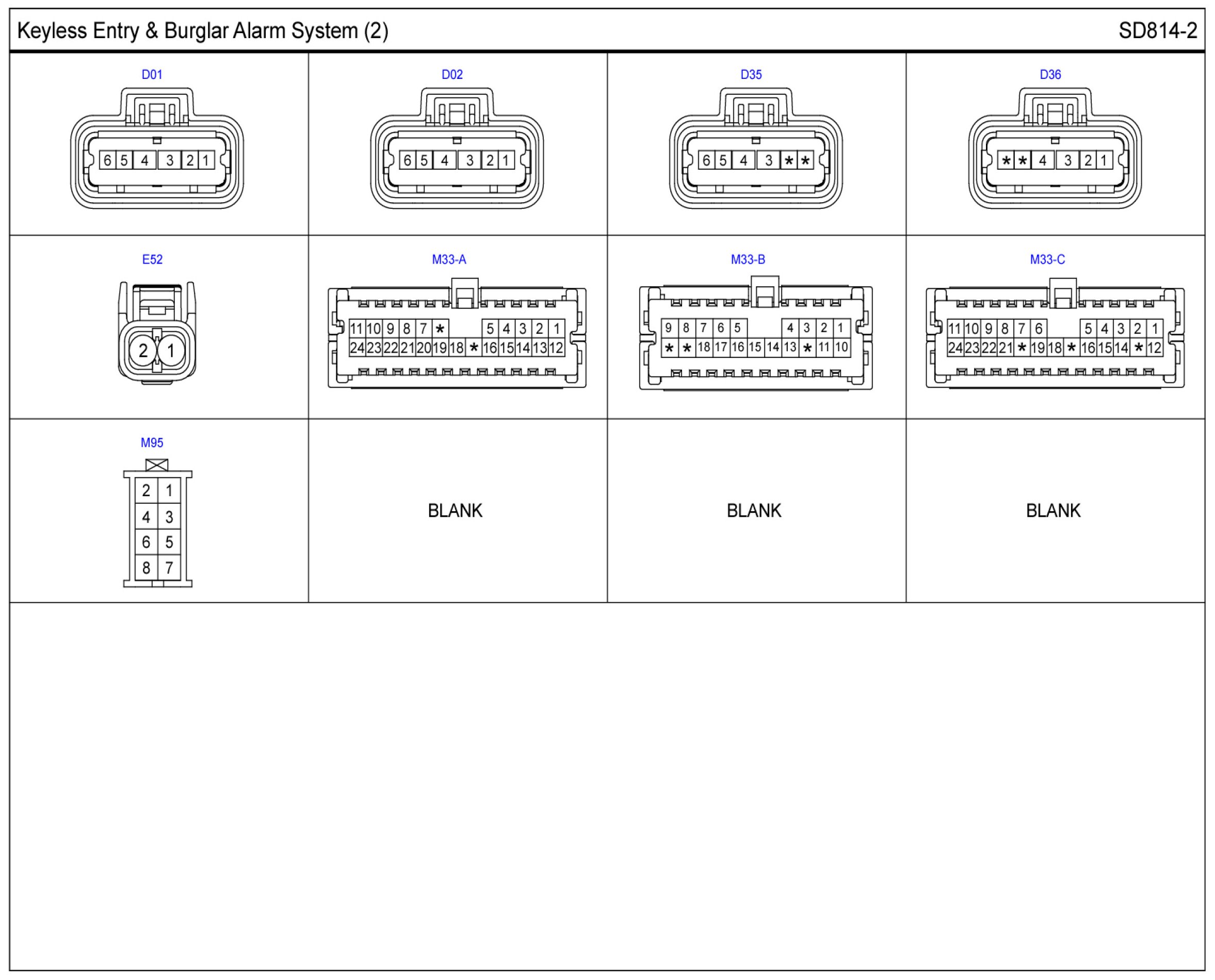 Keyless Entry & Burglar Alarm System Connector Pin Outs: