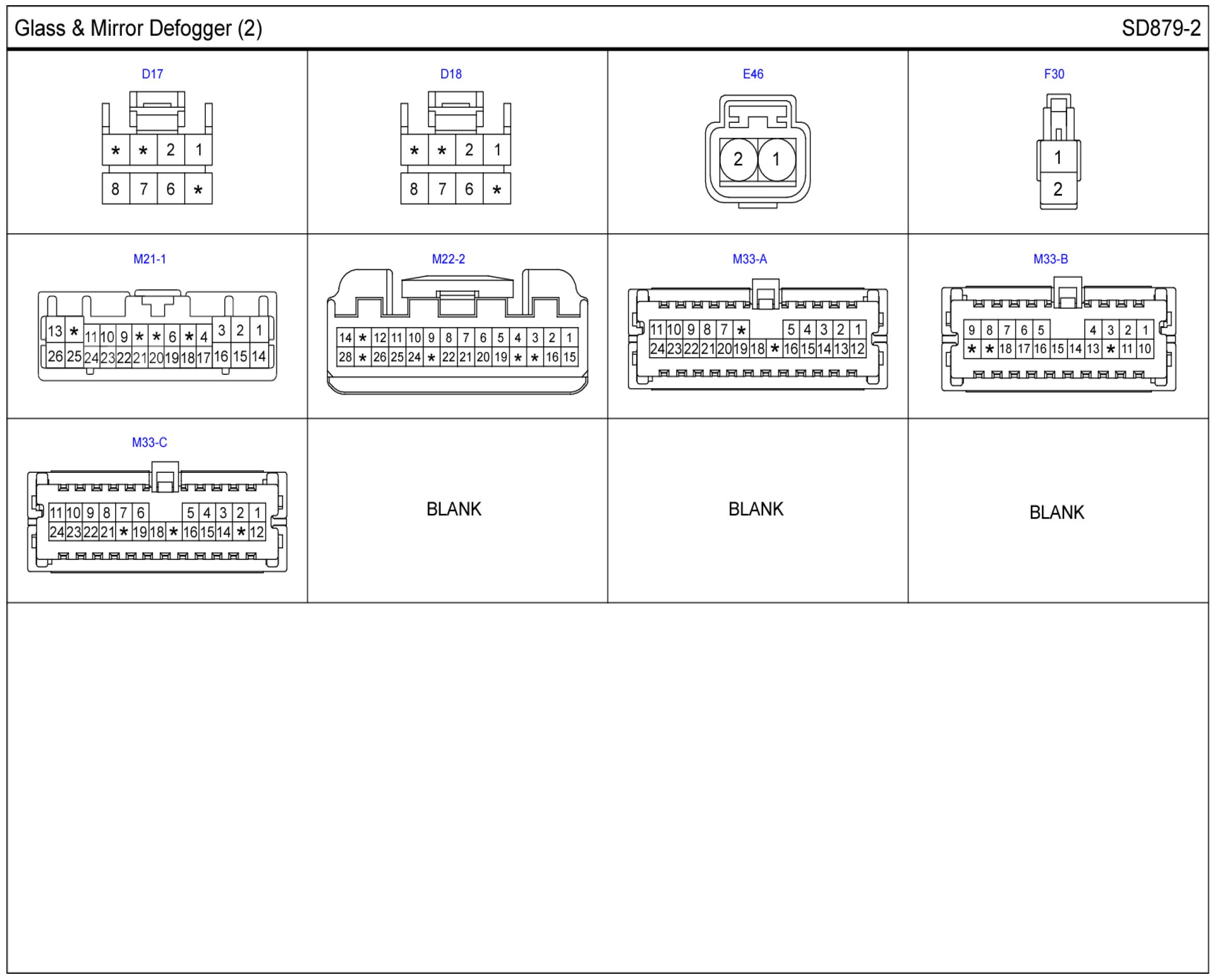 Glass & Mirror Defogger connector Pin Outs: