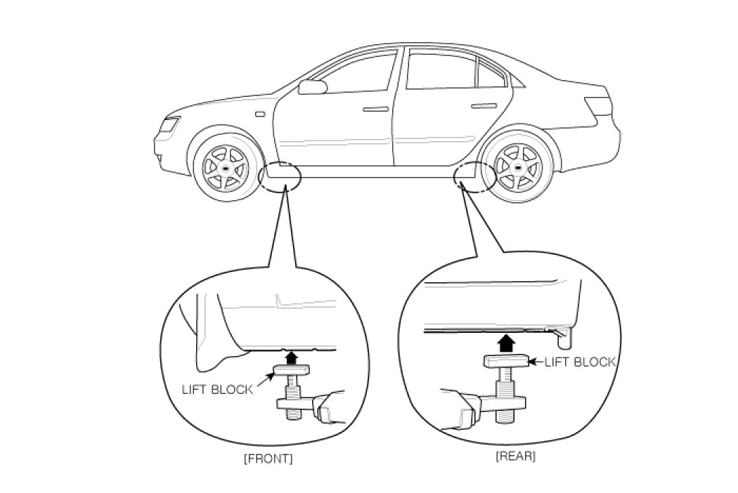 1. Place the lift blocks under the support points as shown in the illustration.