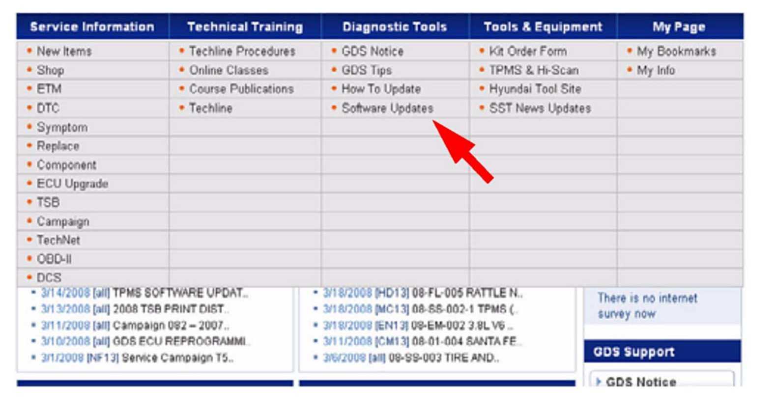 2. On the Blue menu bar, select "Diagnostic Tools" and choose "Software Updates".