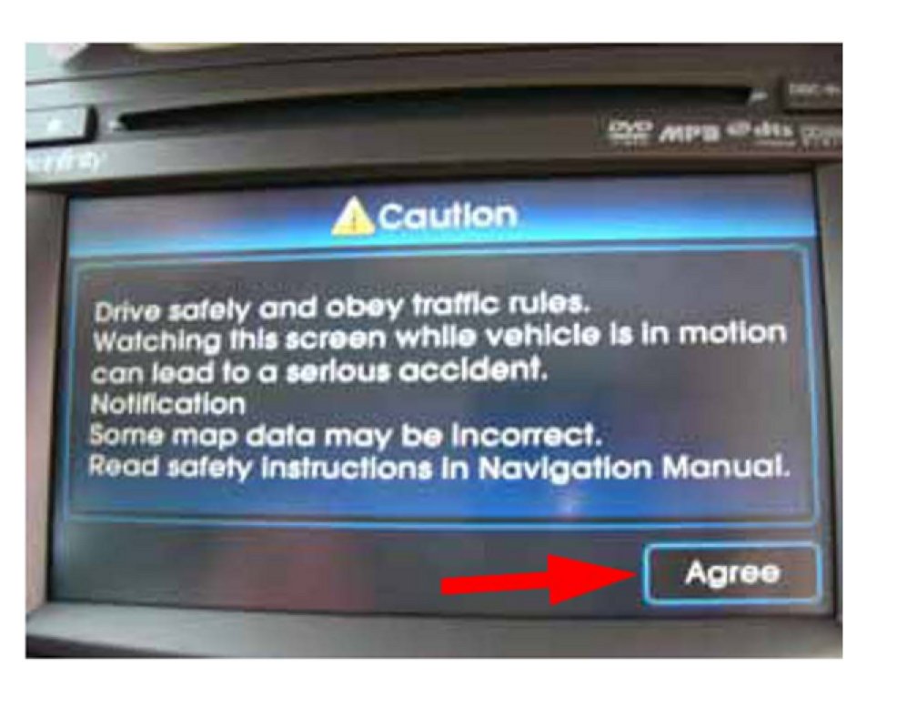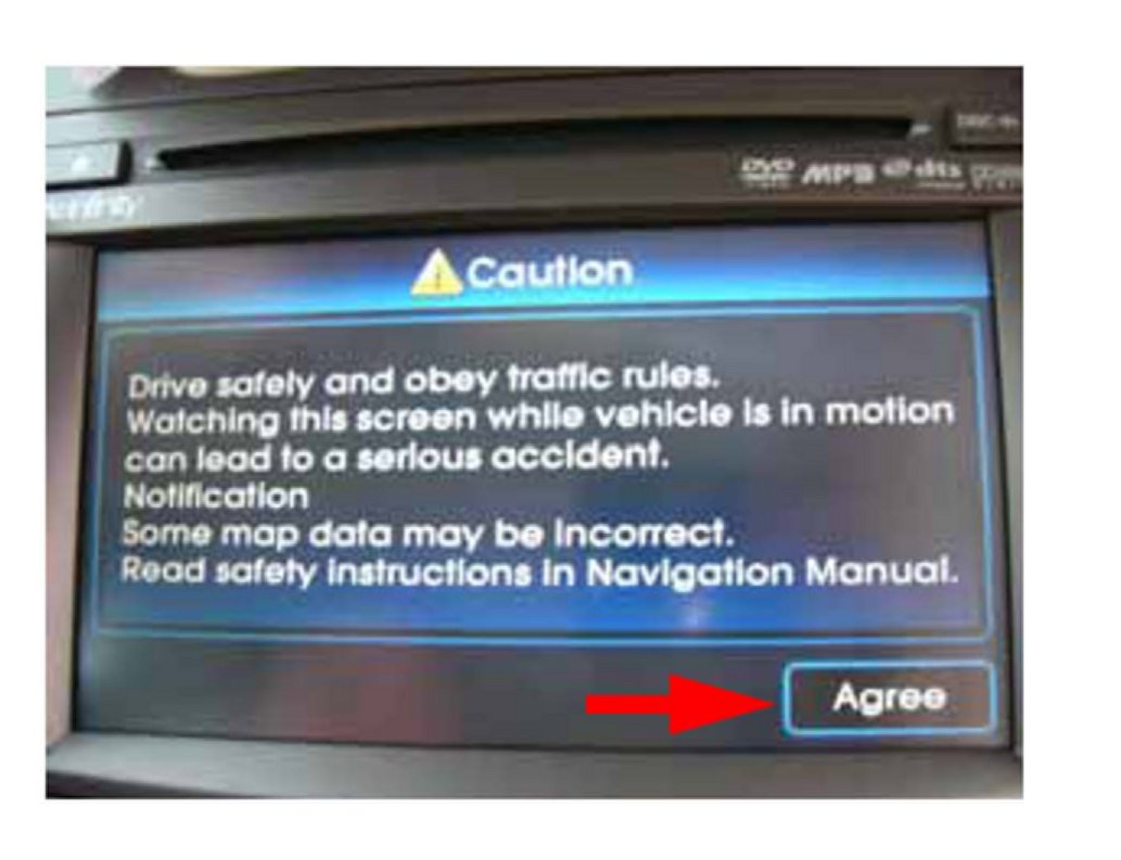 2. Turn the Radio/Navigation unit ON and press the "Agree" button on the screen.