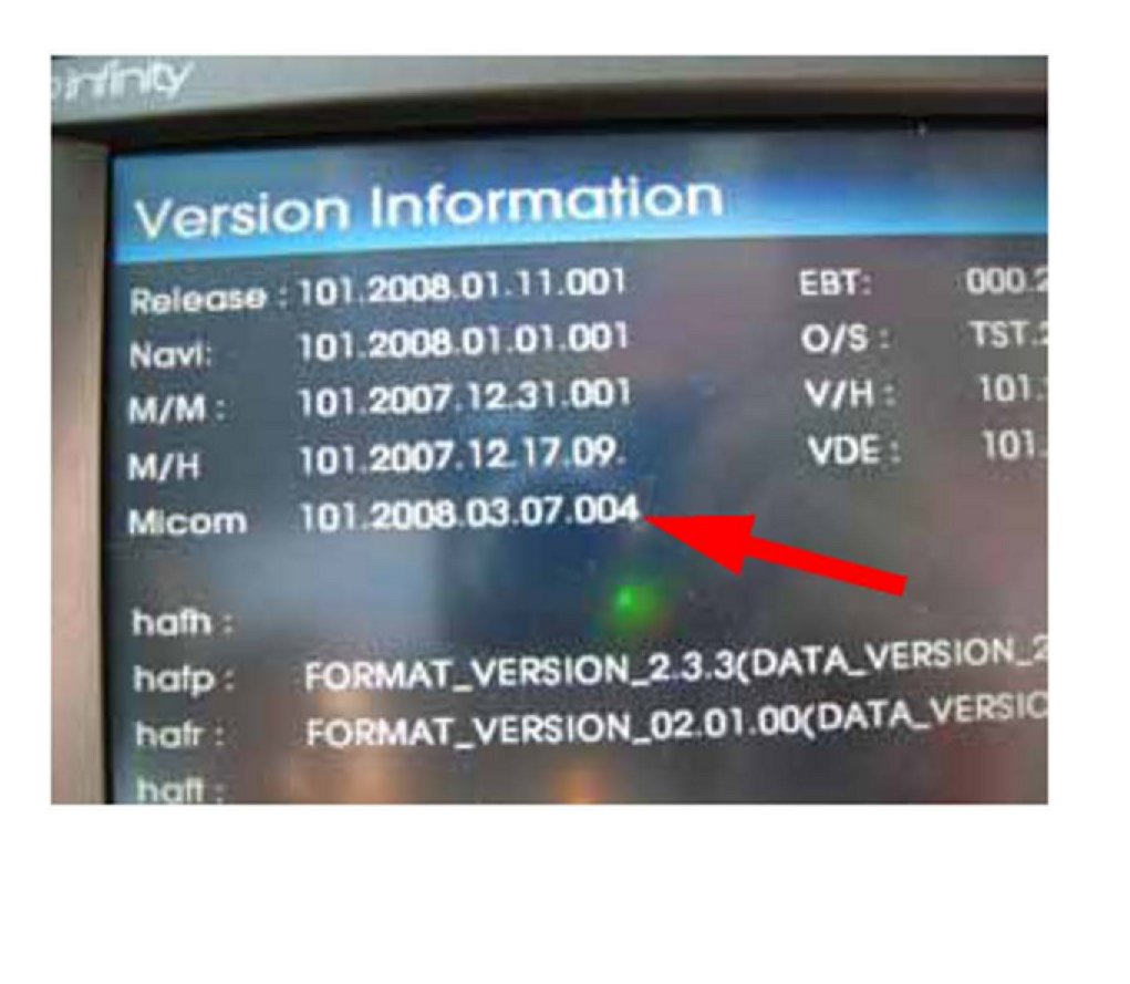 14. Verify the Micom version on the screen reads "101.2008.03.07.004". If the Micom version does not match, repeat steps 1-8.