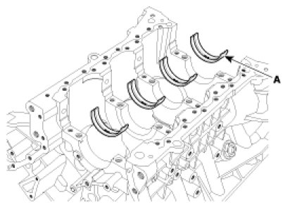 (1) Align the bearing claw with the claw groove of the cylinder block, push in the 4 upper bearings(A).