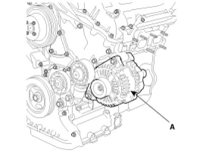 9. Remove alternator(A) from engine.