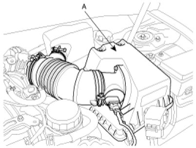 (4) Remove the intake air hose and air cleaner (A).
