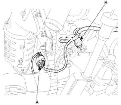 (3) Disconnect LH rear oxygen sensor connector(A) and CPS connector(B).