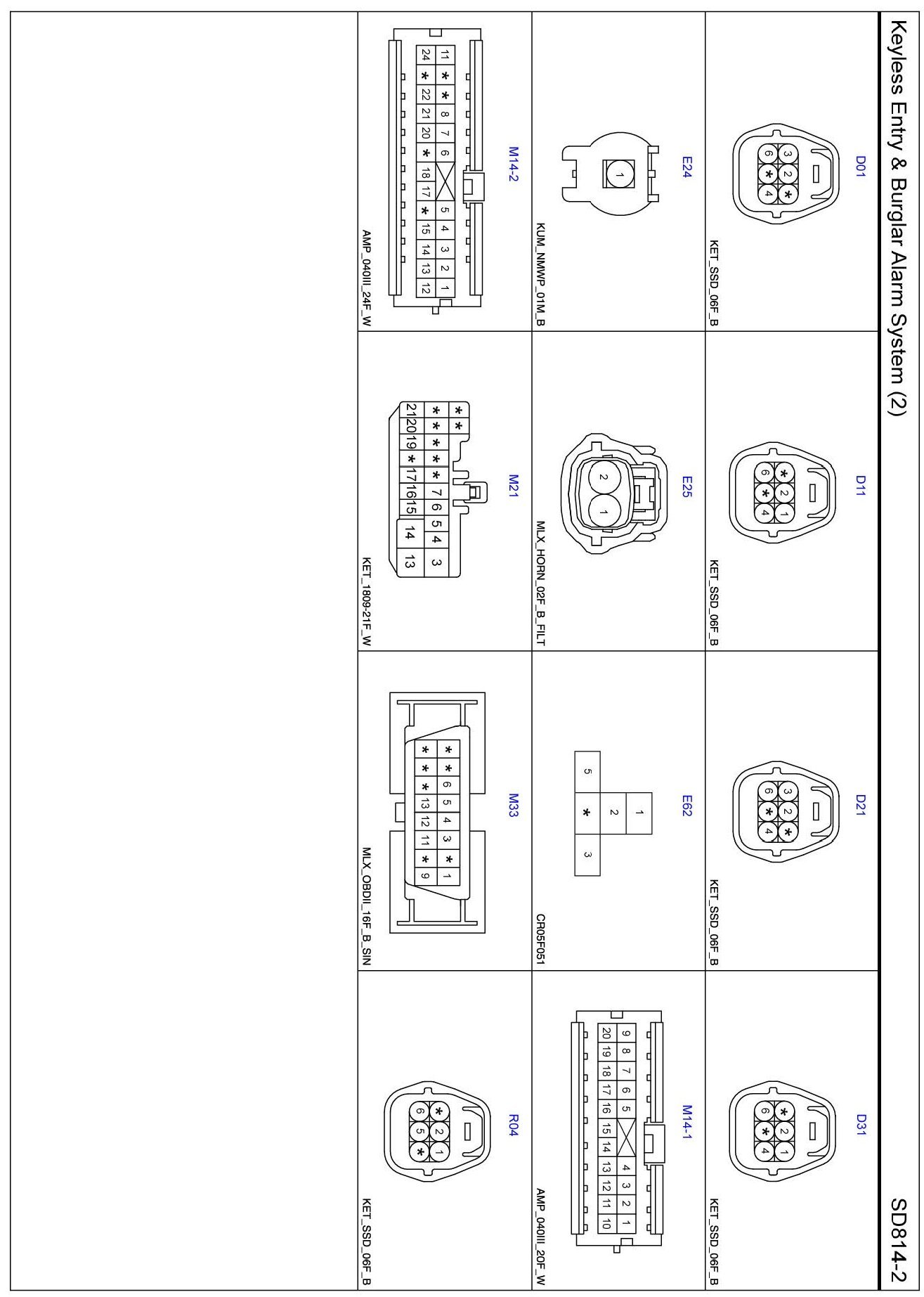 Keyless Entry & Burglar Alarm System (2) Connector Pin Outs: