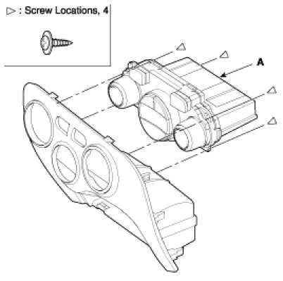 4. Loosen the heater control unit mounting screw. remove the heater control unit (A).