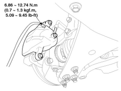 3. Loosen the right-rear brake bleed screw to allow air to escape from the system. Then tighten the bleed screw securely.