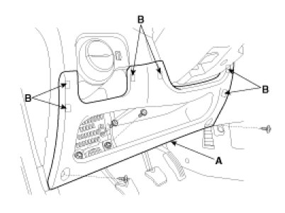 2. Remove the crash pad lower panel (A).