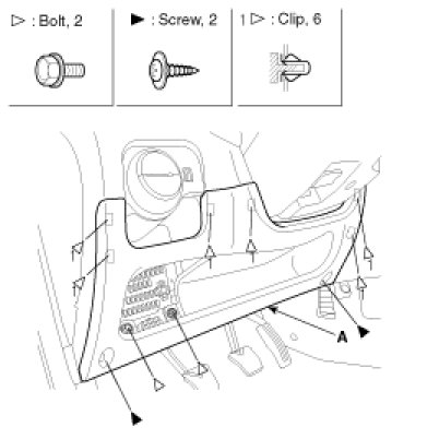 Remove the crash pad lower panel (A).