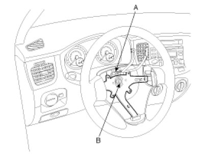 3. Disconnect the connector (A) and remove the steering wheel lock nut (B).