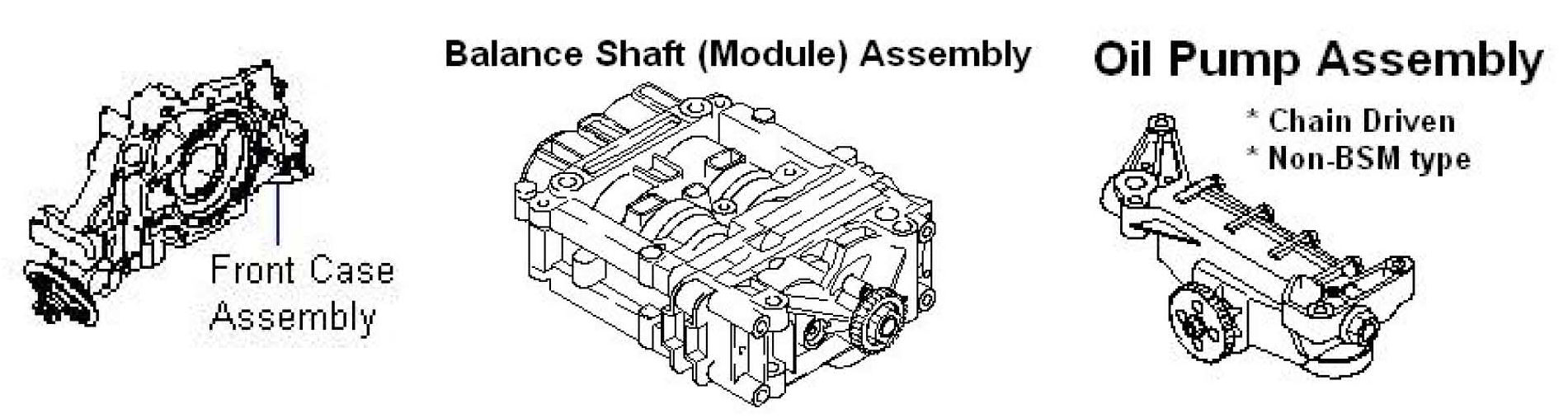 ^ (For engines using front case assembly oil pumps) Inspect the connection between the front case assembly and the oil screen assembly. Replace the oil screen gasket if necessary. Re-tighten (if necessary) the bolt fasteners of the oil pickup screen.