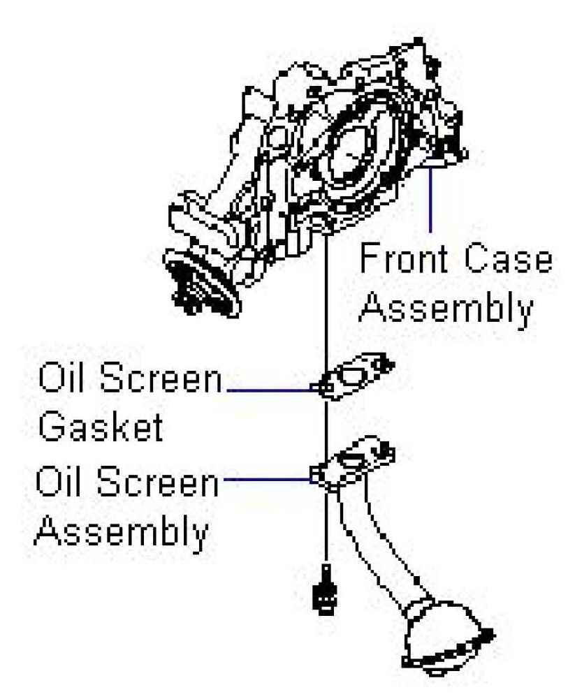 Proper sealing of the oil pump cover and the oil pickup screen to the oil pump front case body is important for proper oil pressure delivery during engine operation.