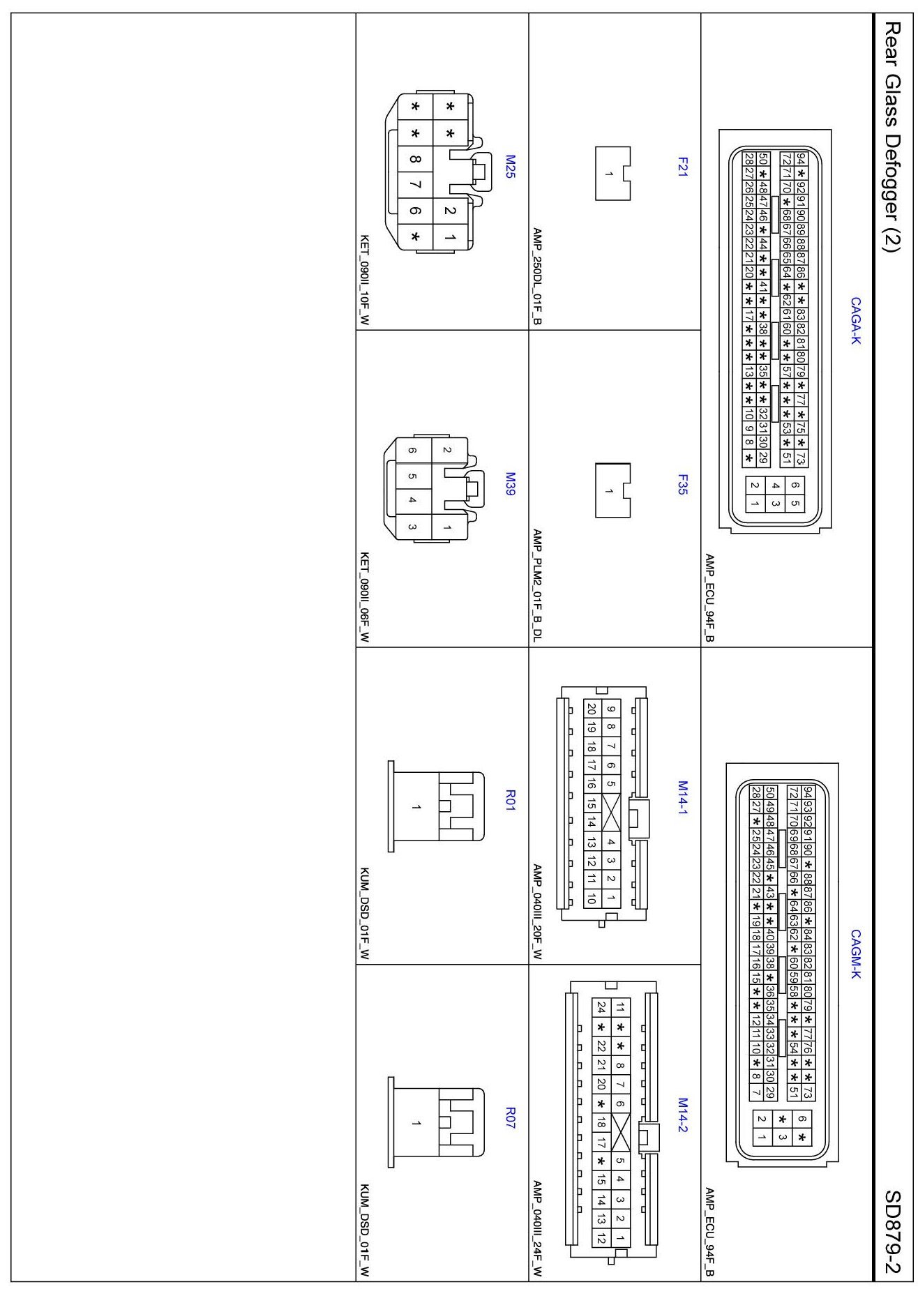 Rear Glass Defogger (2) Connector Pin Outs:
