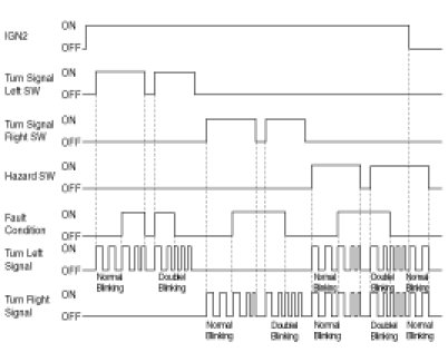 While IGN2 is ON if turn signal left switch or turn signal right switch or hazard switch input is detected, then turn signal outputs are turned ON following the switch input (left, right or hazard).