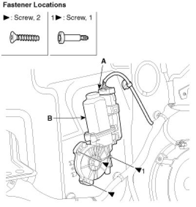 2. After disconnecting the connector (A), remove the power window motor (B).