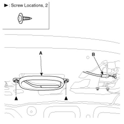 3. After loosening the inside handle mounting screws, then remove the inside handle (A).