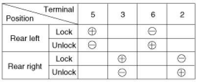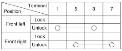 2. Check for continuity between the terminals and ground according to the table.