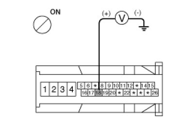 2. Turn the ignition switch ON, measure the voltage between terminal 18 of the ABS control module harness side connector and body ground.