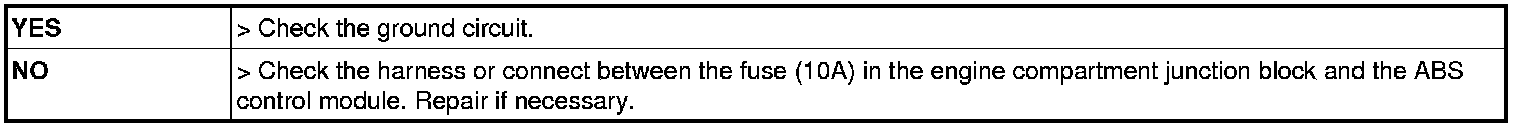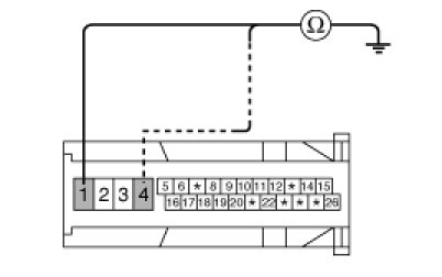 2. Check for continuity between terminals 1,4 of the ABS control module harness side connector and ground point.
