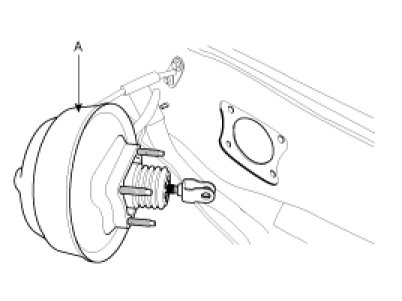 2. Disconnect the vacuum hose (A) from the brake booster (B).