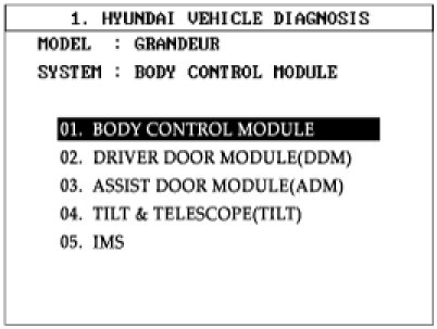2. Select option "BODY CONTROL MODULE" and press ENTER.