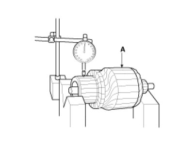 5. Measure the commutator (A) runout.