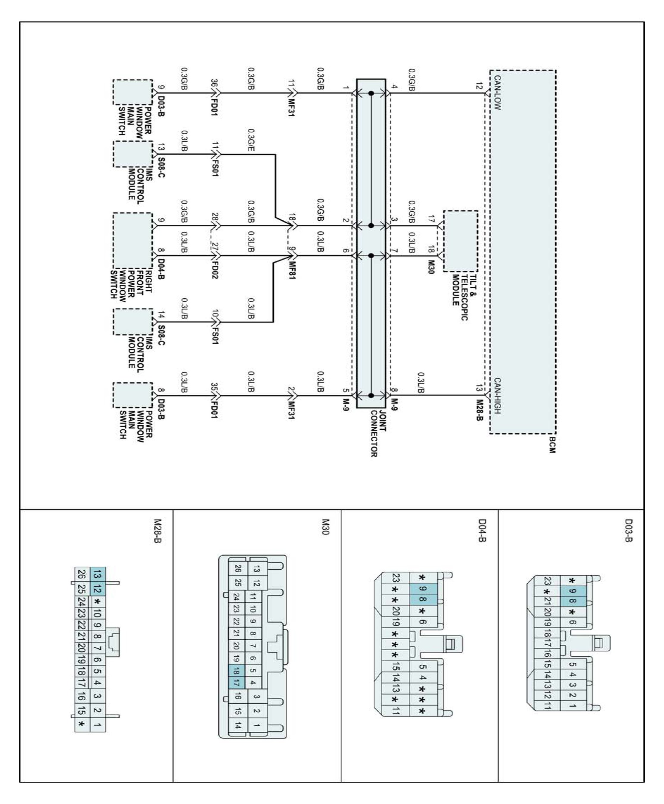 To make system be more efficient, Body Control Module (hereinafter referred to BCM) applies CAN (Controller Area Network) communication system. CAN is a kind of communication system which can make related component share system information with just two line instead of complex individual signal line. It consists of related component and CAN BUS which consists of CAN_high line and CAN_low line. Each component can send and receive information by binary signal via CAN BUS. The related components for BCM are BCM, ADM, DDM and IMS (Seat, S/C)