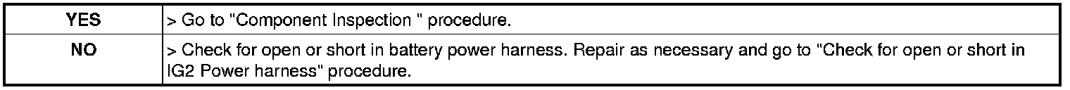 Check for open or short in IG2 Power harness
