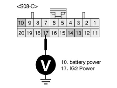 3. Measure voltage value between terminal "17" of Powerseat ECU and chassis ground.