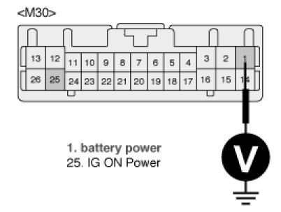 3. Measure voltage value between terminal "25" of Tilt / Telescope module and chassis ground.