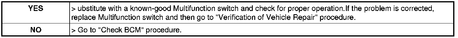 3. Substitute with a known-good Multifunction switch and Check if the DTC is erased.