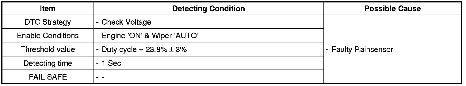 The ECM sets DTC B1905 if there's any internal fault in rain sensor.
