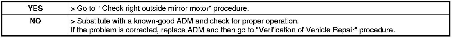 Check right outside mirror motor