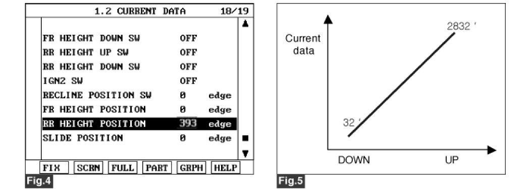 Fig.5) Current data of rear height sensor as a function of vertical position of seat.